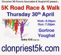 From the organisers.....“Huge thanks to all who turned up yesterday to Clonpriest 5k. We were amazed with the great attendance to both our walk and run.