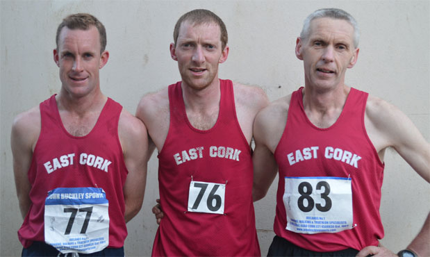 | First 3 men in the Ballintotis 4 mile...(L-R) James McCarthy of East Cork AC 1st, Michael Harty of East Cork 2nd & Michael Bruton of Leevale AC 3rd. Photo: Nina McCarthy |