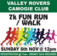 This event organised by Valley Rovers Camogie Club near Innishannon attracted 194 people,,,92 in the 7km race and a further 102 for the 5k fun run.