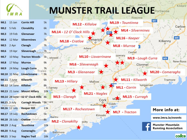 Munster Mountain Running Association.......The MMRA are the Munster branch of the Irish Mountain Running Association. Traditionally, they have organised races which go up and down mountains and hill but recently, they have organised various trail races in woods to broaden the appeal of their events.